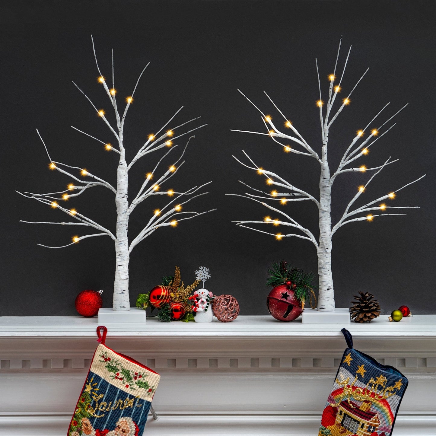 I purchased these and a pair from a competitor with essentially the same description. In the photo, the competitor is on the left and this product on the right. I prefer this product because:*the birch markings on these cover the entire tree including branches (markings on competitor tree only cover trunk, and branches are totally white)*these ended up being a little taller - a true 24"*the lights on this product are closer to fairy lights, they aren't chunky or stick out, however the white is a cooler warm white vs. the competitor with a true warm white glow, also competitor tree had 28 lights per tree vs. 24 on this one so it was a little brighter*I found the placement of the branches on the trunk in a position that makes them look better when spread outOverall, both products will work for me but if I order more it will be from this brand even though they are $5 more.