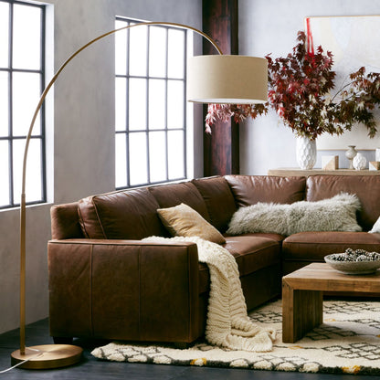 This arc floor lamp brings calm structure to your space — its sweeping curve and neutral fabric shade offer presence without shouting. Designed to anchor a reading corner, frame a sofa, or balance an open living space, it's as much architectural element as it is ambient light.
